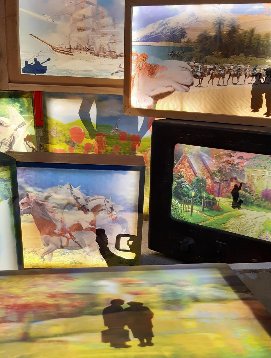 népesítik be a művész képeit. Az ő sziluettjük jelenik meg a bevásárló